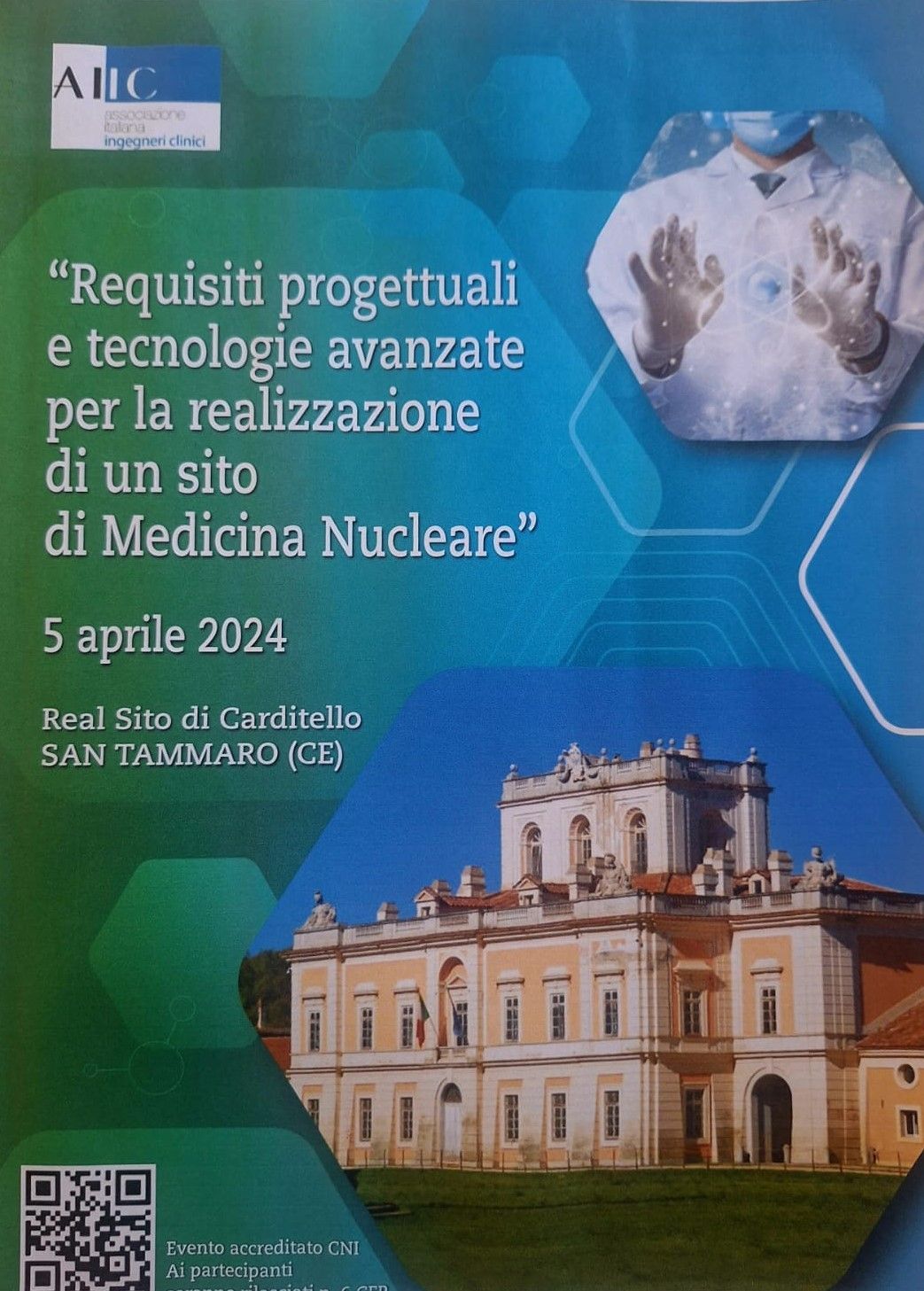 L'evento formativo, organizzato dall'AIIC (Associazione Italiana Ingegneri Clinici) il giorno 5/04/2024, ha trattato temi importanti del nostro settore: "Requisiti progettuali e tecnologie avanzate per la realizzazione di un sito di Medicina Nucleare".